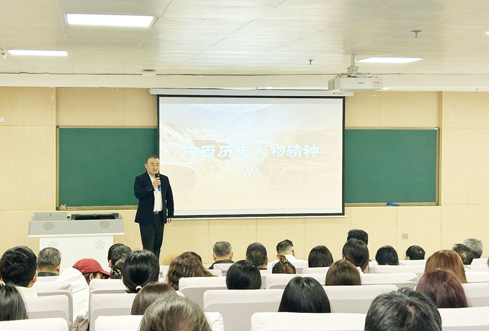 报告会上,张晋龙以“陕西历史人物精神”为主题,从文明传承塑担当、古都史蕴铸情怀、文明交融淬气节、天人融合开境界等四个方面,挖掘司马迁、孙思邈、苏武、王鼎、张载等陕西籍具有代表性的历史人物的精神内涵,生动阐释了陕西历史人物所蕴含和彰显的使命担当、家国情怀、刚正气节、天地境界等精神气质,最后以“如何践行陕西历史人物精神”叩问三秦学子,引发在场师生深度思考。
