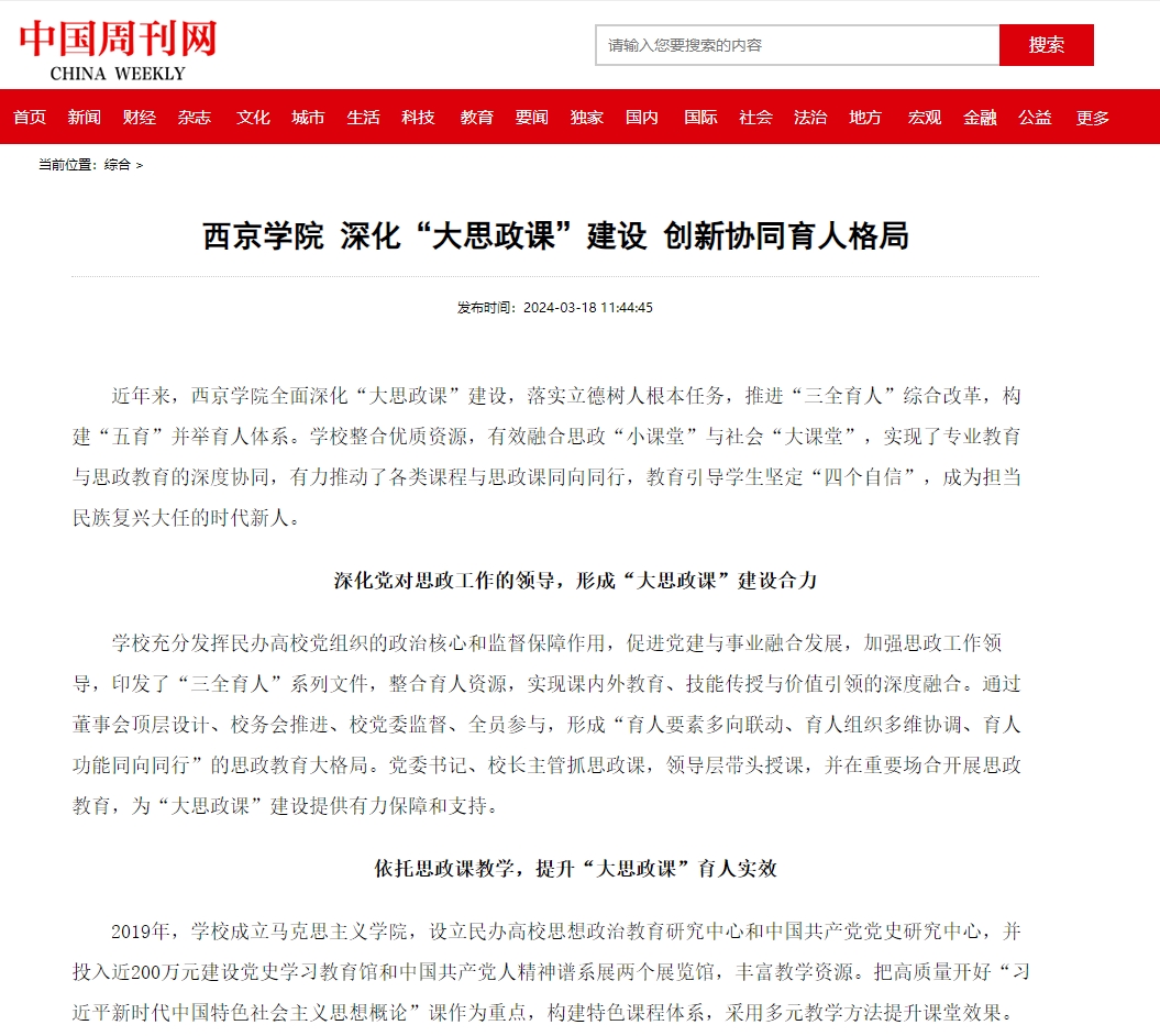 下一步,西京学院将持续深化思政课程、课程思政、思政教育的有机融合,以思政教学为基石,以思政教育为主线,全面调动各方资源,形成合力,让每一名学生都沐浴在浓厚的“大思政课”氛围中,成长为具有社会责任感、创新精神和实践能力的优秀人才,为社会的进步和发展贡献西京的智慧与力量。(尚磊)