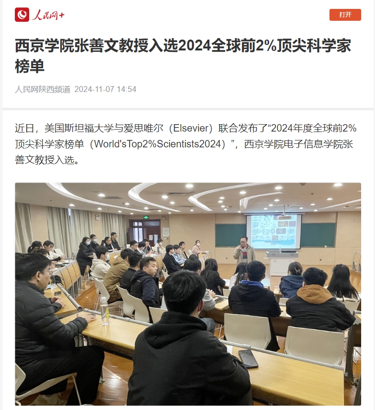 人民网陕西频道:近日,美国斯坦福大学与爱思唯尔(Elsevier)联合发布了“2024年度全球前2%顶尖科学家榜单(World'sTop2%Scientists2024)”,西京学院电子信息学院张善文教授入选。