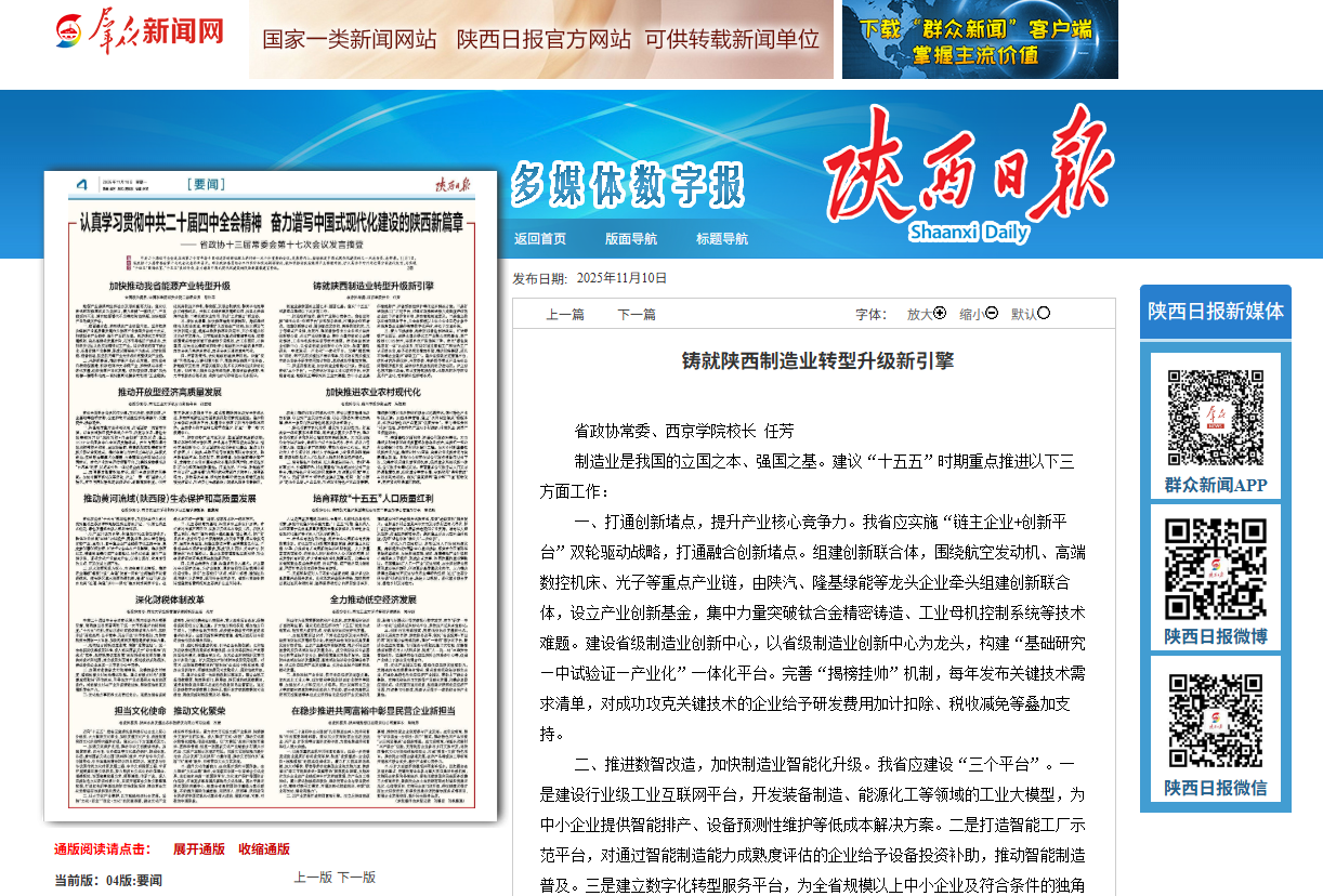 省政协常委、西京学院校长任芳:强化创新融合发展 铸就陕西制造业转型升级新引擎