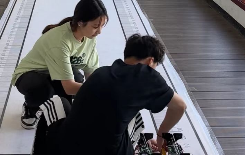 在遇到难以攻克的问题时,大家互相讨论,老师们耐心指导,最终窄足竞步机器人和交叉足机器人分别以用时1分31秒和1分36秒完成了6米赛道指定竞走动作的好成绩,光电小车通过高效的颜色识别和寻迹,按照指定路径将颜色相同的物块放到对应位置,完成了比赛要求。