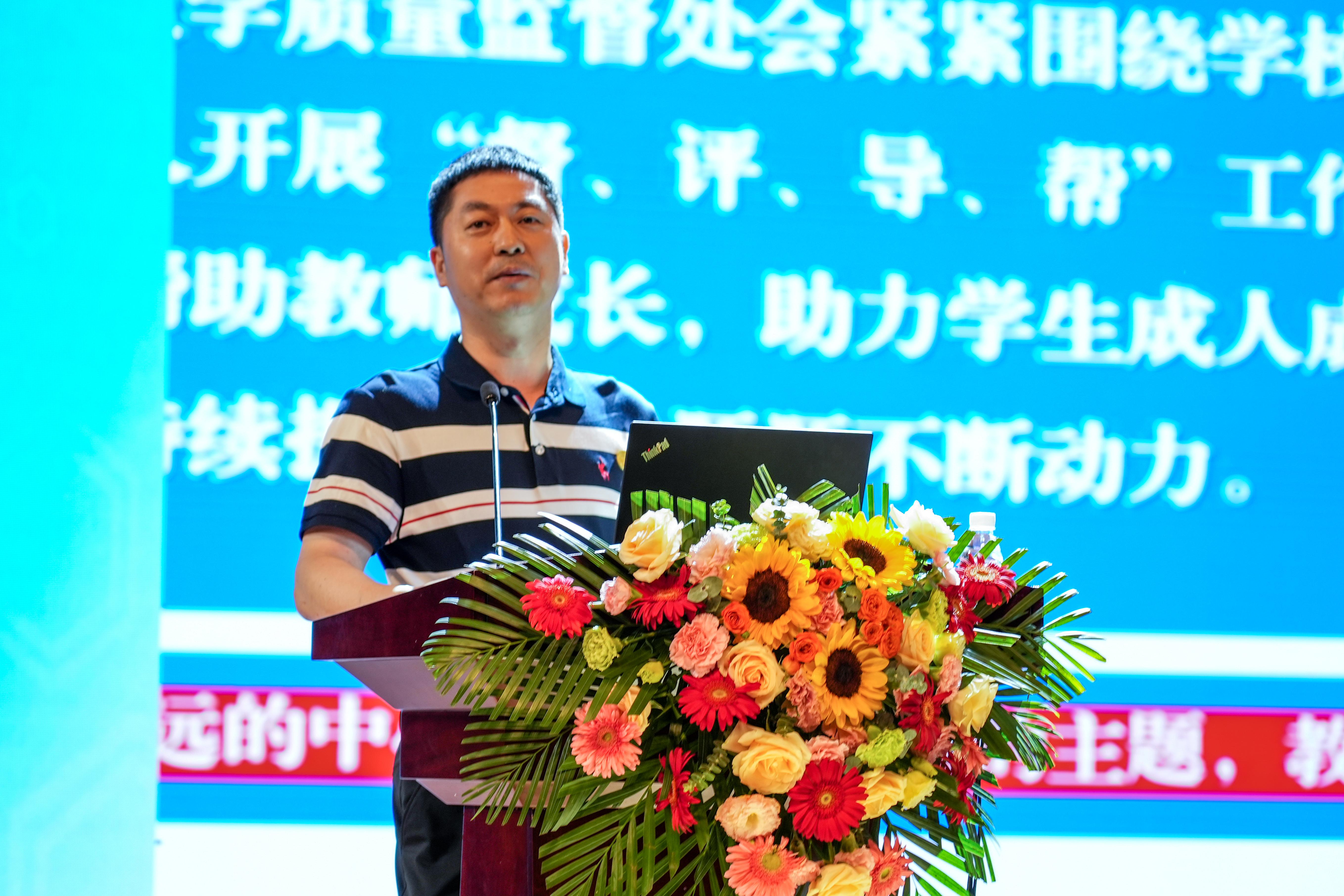 教育教学质量监督处处长边伟以《教育教学质量保障与监控体系建设实践回顾与再思考》为题,认真分析了质量保障体系的构建现状,并从实践背景、实践成效等方面对质量保障体系建设工作进行了认真梳理,他认为,教学是永远的中心,质量是永恒的主题,教改是永远的主旋律。教育教学质量监督处会紧紧围绕学校内涵发展的主要工作任务,深入开展“督、评、导、帮”工作,替学校教育教学质量把关,帮助教师成长,助力学生成人成才,为学校人才培养质量持续提升注入源源不断动力。