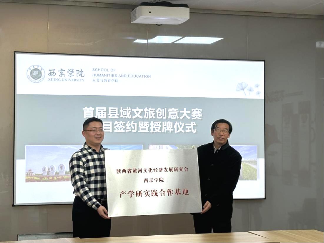 西京网讯:12月8日 ,由陕西省黄河文化经济发展研究会及西京学院人文与教育学院联合举办的首届县域文旅创意大赛项目签约仪式举行。中国黄河文化研究会陕西分会会长雷璟思、中国黄河文化研究会秘书长梁立、宜君县文化旅游局局长弥会军、原铜川市王益区文化旅游局局长杨金印、西安天瑞文化产业发展有限公司总经理王东以及西安知名学者,西京学院副校长王震、大学生创业与就业中心主任王君、传媒学院副院长沈忠杰及人文与教育学院院长谢俊平等出席活动。