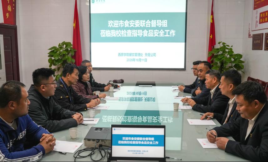 西京网讯:10月11日,西安市市场监管局四级调研员寇安侠带领由市教育局、市卫健委、市城管执法局和市市场监管局相关人员组成的联合督导检查组,来我校开展秋季校园及周边食品安全工作专项检查。我校副校长马成胜、华煜公司总经理唐娣芬、餐饮管理处处长宋小军、天煜公司经理杨济防等参加检查。