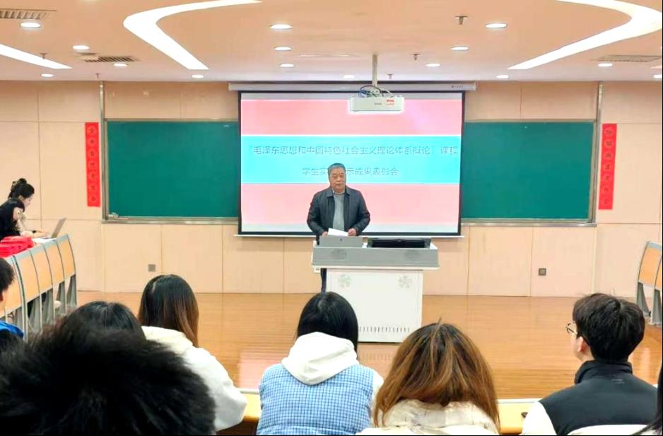 西京网讯:11月13日下午,“毛泽东思想和中国特色社会主义理论体系概论”课学生实践成果表彰大会在图书馆304报告厅举行。会议由该课程教研部主任戴从容主持,马克思主义学院教师及获奖学生代表参会。