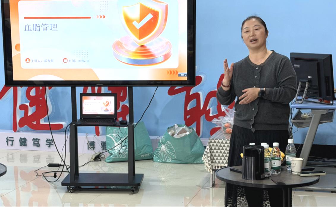 沙龙邀请工会医院邓春荣副主任医师作专题分享。邓医生以《血脂健康的科学管理与核心策略》为题,围绕血脂健康管理、职业病防治、压力调适与心理疏导、科学作息与运动建议等方面进行讲解,为辅导员提供专业实用的健康指导。