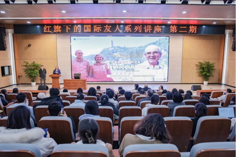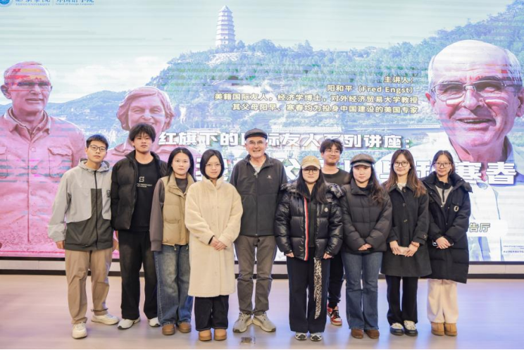 西京网讯:11月24日下午,由陕西省斯诺研究中心与西京学院外国语学院共同主办的“红旗下的国际友人”系列讲座第二期举行。本次讲座邀请对外经济贸易大学教授阳和平(Fred Engst)担任主讲,以“我的父母阳早和寒春”为主题,通过个人经历与历史资料,回顾了其父母在中国的工作与生活。讲座由陕西省斯诺研究中心主任、西京学院外国语学院院长胡宗锋教授主持。