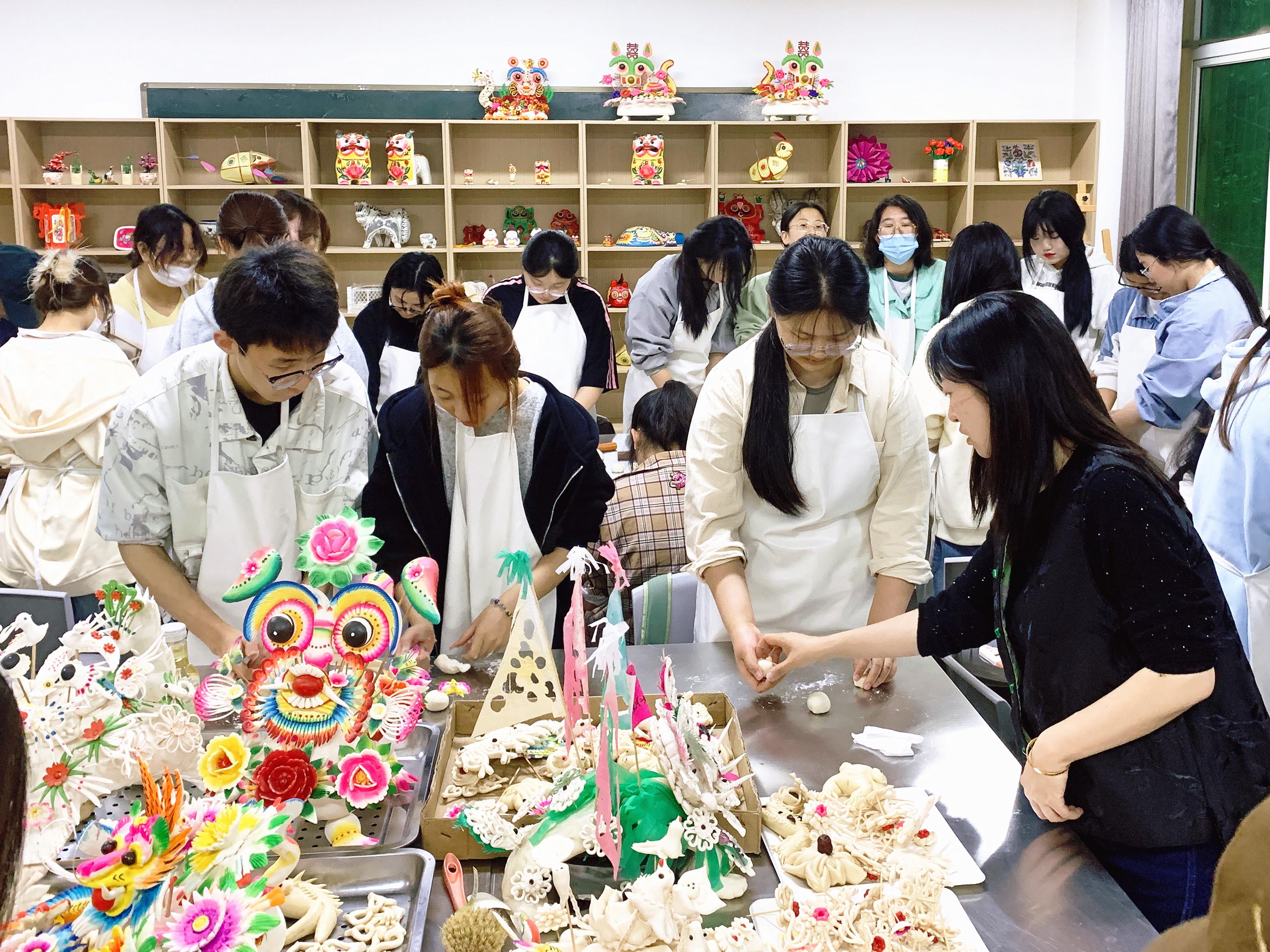 “同学们上完一天专业课,晚上来这儿安安静静坐着,花2个小时去刺绣、剪纸。做面花时,我会告诉学生你做的是食物,要敬畏粮食。学生做好后会很兴奋地跟妈妈拍照或者视频分享,然后拿回宿舍跟同学一起品尝。”谈起课上的细节,刘静语气中充满感慨,“当他沉浸到艺术中的时候,心情就舒缓下来了。”