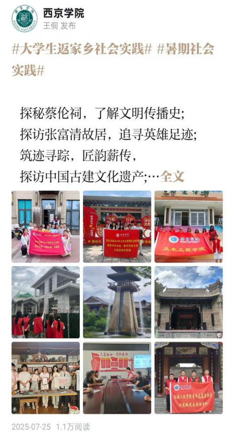 西京网讯:近日,中宣部“学习强国”学习平台公布了2025年度“学习强国”同学汇系列评选结果,西京学院被中宣部宣传舆情研究中心、“学习强国”学习平台评为“最具传播力高校”,作品《西京学子暑假三部曲——探文明之源、仰英雄之光、传匠人之魂》荣获2025年度“学习强国”同学汇人气作品。