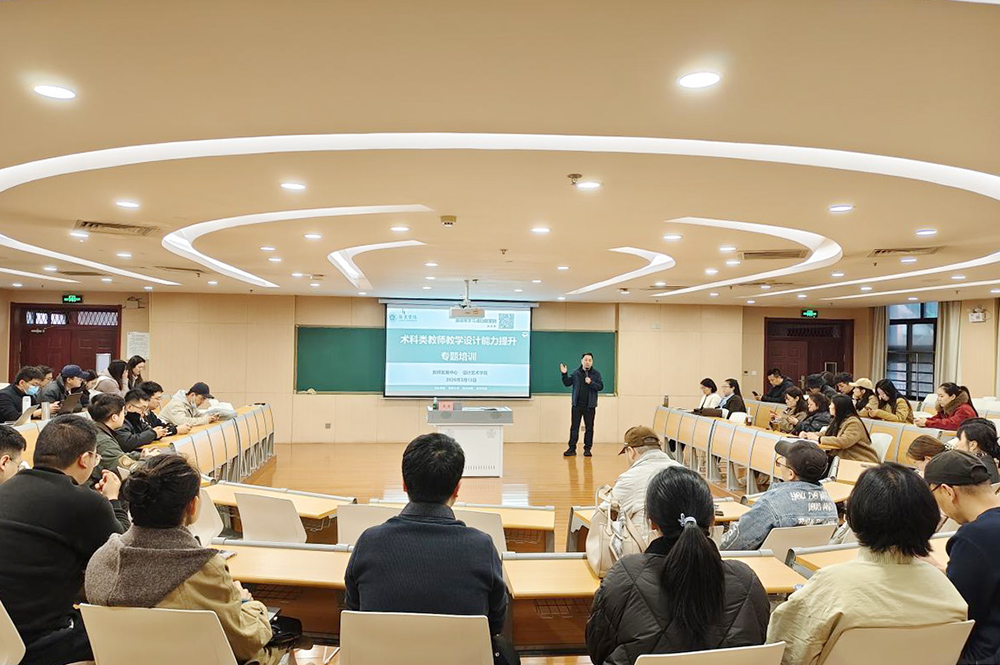 西京网讯:3月13日,由教师发展中心与设计艺术学院联合举办的第七期教学沙龙活动结束。活动以“术科类教师教学设计能力提升”为主题,邀请设计艺术学院教师高蓝、范敏洁作专题分享。设计艺术学院副院长冯扬主持活动,50余名教师报名参与。