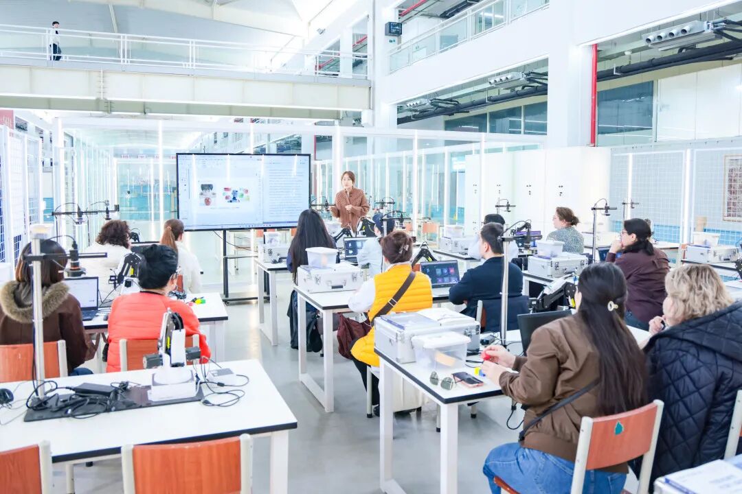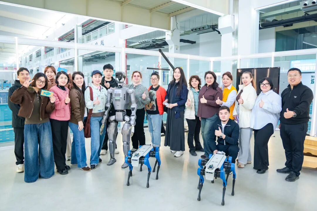 研学团成员们兴奋地比划着,用中文和母语交替表达着惊叹:“太神奇了!”“它比我想象中更灵活!”他们踊跃参与实操,亲手操作实验设备,在实践中感受人工智能技术的独特魅力,加深对技术原理的理解。