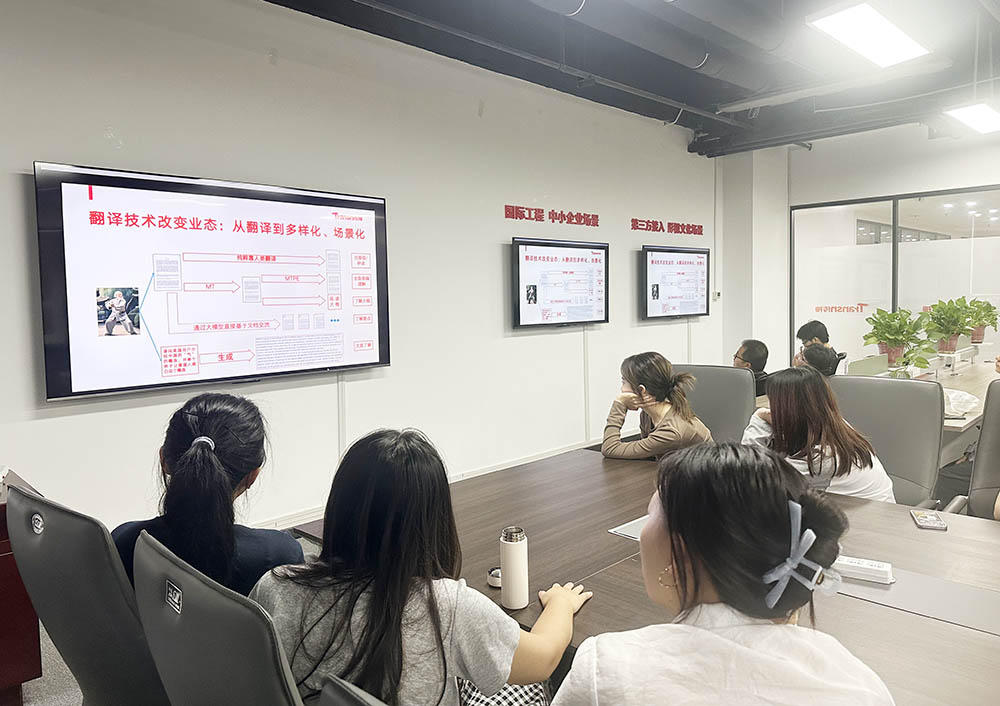 管理服务协同化:三全育人,筑牢成长保障。学院以“三全育人”理念为引领,整合多方育人力量,构建职责清晰、衔接紧密的育人共同体,破解传统管理模式难以适配学生个性化发展需求的痛点。一是强化双导师协同育人核心:压实校内学术导师立德树人第一责任,同时从稳定合作基地选聘行业专家担任校外导师,在学生6个月校外实习期间,引入真实产业项目与职业规范,联合指导学生提升解决复杂实际问题的能力。二是织密全过程服务网络:建设专业化管理服务队伍,推动思政与教学深度融合。辅导员聚焦思想引领、心理健康与学风建设;研究生秘书负责招生、培养、学位授予全流程教务保障;班主任搭建师生沟通桥梁,强化学业督导与学术共同体建设。近期,班主任张飏联合上海文策国家语言服务出口基地,举办“DeepCAT-人工智能翻译管理平台”专题培训,通过“理论+实践”模式有效提升了学生翻译实操能力。