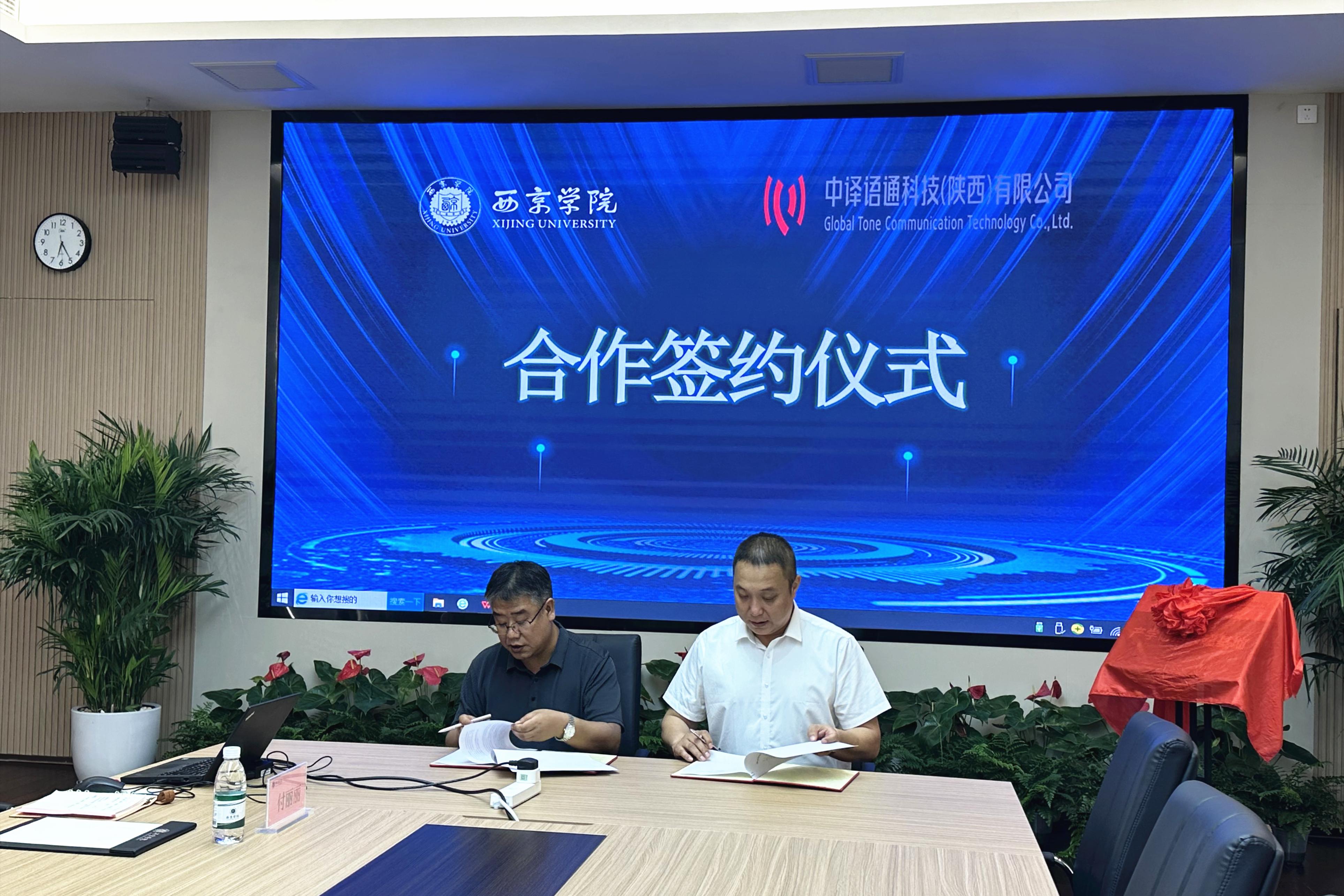 6月13日,西京学院与中译语通科技(陕西)有限公司(简称“中译语通陕西公司”)产教研融合基地签约暨揭牌仪式在第一会议室举行。谢俊平、学术院长胡宗峰,乌伟、院长助理杨凯,张欣晨、研发总监任飞、语言总监陈栋共同参加了揭牌仪式。