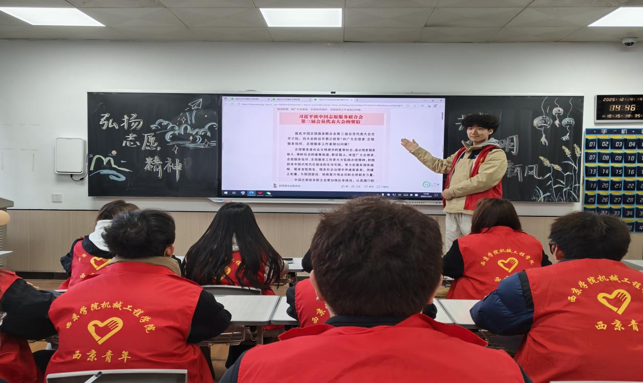 为深入学习贯彻习近平总书记重要贺信精神,引导广大青年学子深刻领会贺信精神实质,厚植家国情怀,弘扬志愿精神,12月3日,机械工程学院青年志愿者协会在3535教室组织集体学习贺信内容并观看志愿服务纪实短片,交流学习感悟,凝聚奋进力量。