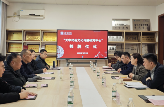 为深入挖掘、保护与创新传播关中地区丰富的民俗文化遗产,推动传播学科建设与地方文化发展深度融合,12月9日,传媒学院与关中民俗艺术博物院共建的“关中民俗文化传播研究中心”挂牌仪式在我院会议室举行。