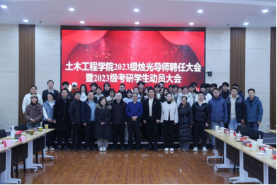 1月4日下午,土木工程学院于第二会议室召开烛光导师聘任大会暨2023级考研学生动员大会。学院领导班子成员、受聘烛光导师、2023级考研学生及相关辅导员出席会议。会议由学科建设办公室主任何世丹主持。