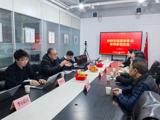 西安网是科技发展有限公司董事长马航昌、副总经理曹安、马永江、李园园等企业负责人,西京学院商学院副院长梁林蒙、大数据管理与应用系系主任倪恒、金融科技系系主任卢静与教师康思葳共同出席本次交流会。结合当前时代发展趋势与企业发展需求,双方就产教融合模式等相关议题展开深度交流。