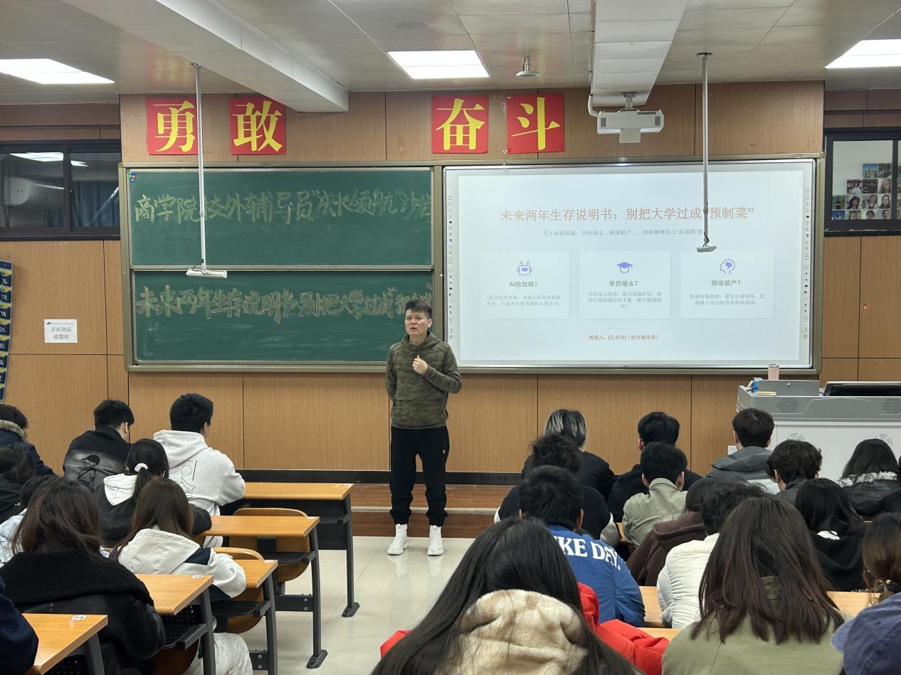3月26日,学院同步开展两场特色沙龙。一场聚焦破解“预制式”成长困境,校外辅导员围绕AI时代能力重构、大学规划破局展开分享,提出“主动定制成长路径”理念,强调人机协作的核心竞争力,引导学生从“知识搬运”向“能力创造”转型;另一场由辛功强老师主讲公文写作知识,结合商科专业特色,系统讲解商务函件、调研报告等高频文种的规范与技巧,通过正反案例对比破解写作误区,分享商科场景下的实用写作方法,切实弥补学生文书技能短板。