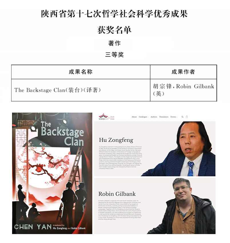 依托“文学翻译与数字人文陕西省高等学校重点实验室”平台优势,学院科研成果捷报频传。在2025年度陕西省教育厅科学研究计划项目立项中,学院3项课题成功获批,其中重点项目2项、一般项目1项,研究方向覆盖文本挖掘、文学翻译、丝路文化传播等前沿领域;4月,学院院长胡宗锋教授与罗宾・吉尔班克教授合作译著《TheBackstageClan(装台)》,荣获陕西省第十七次哲学社会科学优秀成果奖著作类三等奖,充分彰显了学院在本土文学对外译介、中外文化交流领域的硬核实力。
