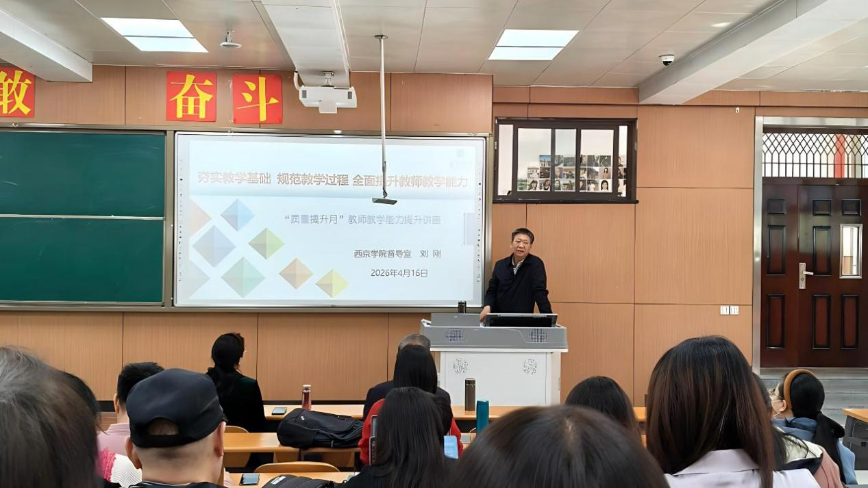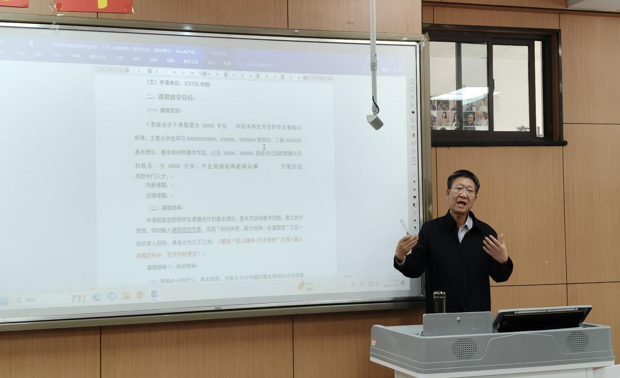 以纲为领,规范教学筑牢根基。课程大纲是教学实施的核心依据,为推动教学过程标准化、规范化,学院特邀学校督导室刘刚教授开展专题培训。刘刚结合日常听查课与专项督查实践,围绕课程目标设定、教学内容组织、考核方式设计等关键要素,进行系统讲解与典型案例剖析,为参训教师理清编写思路、明确质量标准。培训现场互动热烈、交流深入,有效强化了教师的教学规范意识,为课堂教学有序高效开展奠定坚实基础。