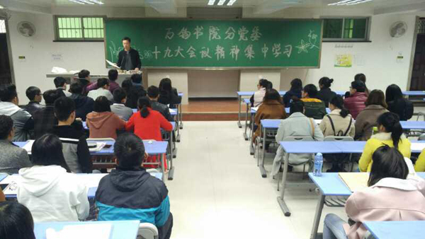 西京网讯:为了深入解读党的十九大精神,12月5日下午万钧书院在2322教室组织万钧书院全体党员学习以“不忘初心 继续前行”为主题的中共十九大精神集中讲解学习,万钧书院分党委组织委员何岩龙主持。