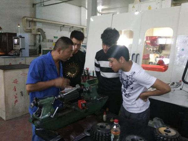 同学们在接受了入厂实习安全培训,质量管理教育培训之后,根据生产实习计划,被分为4组分别进入滚刀分厂、拉刀分厂、插剃刀具分厂、铣削刀具分厂,进行为期二周的生产实习。按照生产组织中的“人、机、料、法、环、测” 六个方面,结合自己所在分厂的实际状况,每天从不同专业角度对自己设置一个专项问题,并与自己的专业知识和专业技能对接,寻求最佳答案和解决方案。了解了加工设备的分类、名称、型号、用途、组成、原理、性能;学习了零件从毛坯到成品整个加工的工艺过程、工艺方法;了解零件加工完成后,如何选择检测方法、如何使用检测工具、量具,如何根据图纸要求进行自检、互检、终检;了解数控机床的结构及控制部分,常见的国内外数控系统,如何通过编程操作实现零件的精密高效加工,数控机床的操作保养规范,近年来出现的新材料、新工艺、新技术等等。