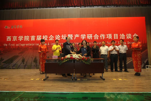 西京网讯(记者 尚磊) 5月24日,西京学院首届校企论坛暨产学研合作项目洽谈会开幕。来自省内外各行业领域有重要影响力的九龙物流企业、中国航天科技集团、广东美的集团、中达电子(江苏)有限公司等近30家单位齐聚西京学院,并与学校进行了校企合作项目对接。期间,西京学院机电工程系、工程技术系、经济管理二系、医学护理系还分别与中达电子(江苏)有限公司、中关村软件园人才基地、浙江九龙国际物流有限公司、西安俪人医院等达成了四项合作协议并举行了签约仪式。
